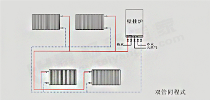 暖气片采用双管同程暖气片一般是暖气片比较多,让每一组暖气片走的管道距离相等,经过每一组暖气片的流量都相等,所以每一组暖气片受力比较均匀,不会出现一组暖气片热一组暖气片冷的现象。一般8组暖气片以上的暖气片可采用此接法,双管同程暖气片一般用的管道采用热熔接法,优点是即使后期使用过程中,管道损坏了容易修复。