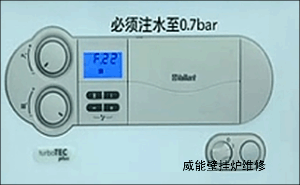 1.如果供暖系统的压力过低,威能壁挂炉会自动切换到故障模式显示故障代码"F.22","F.23","F.24",只有供暖系统中有充足的水时,威能壁挂炉才会重新启动,此时您需要对威能燃气壁挂炉进行补水操作。